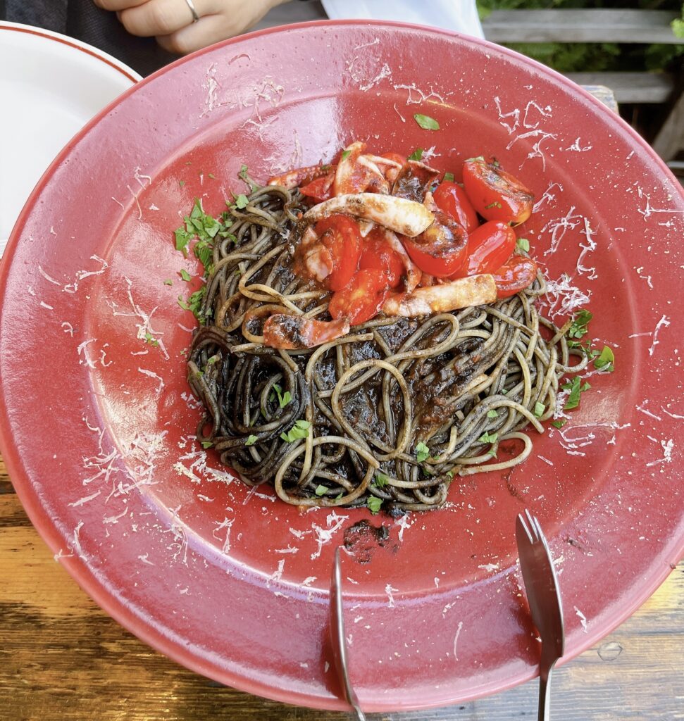 人生二度目のイカ墨パスタでした。(お歯黒になるのが恐怖でなかなか注文できない・・w)