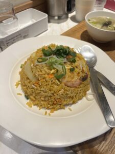友人が頼んでいたカレーチャーハンはスイートチリソースをかけていただきます。