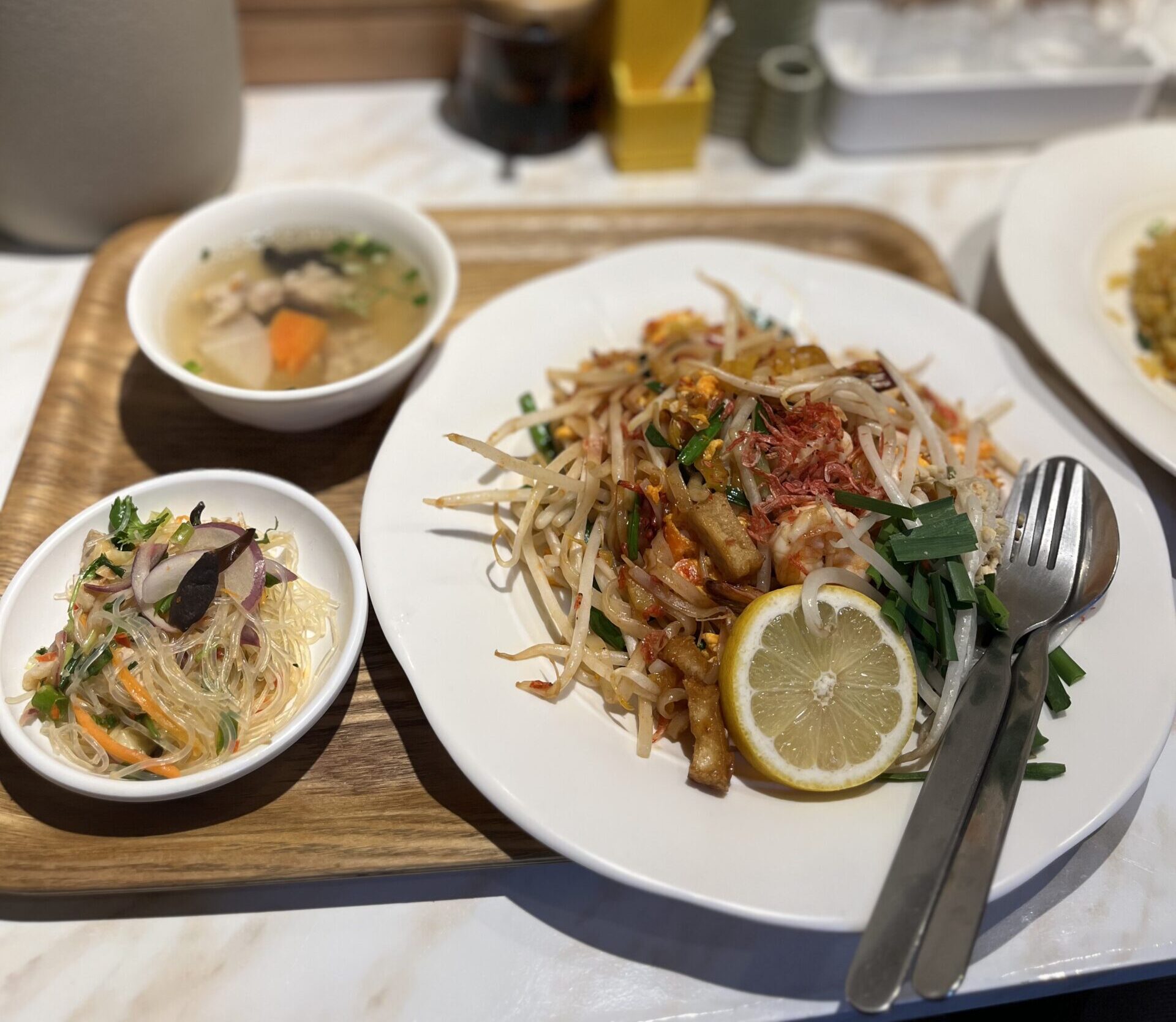 ランチはパッタイにスープとヤムンセン(タイの春雨サラダ)ドリンクがついて1,000円でした!